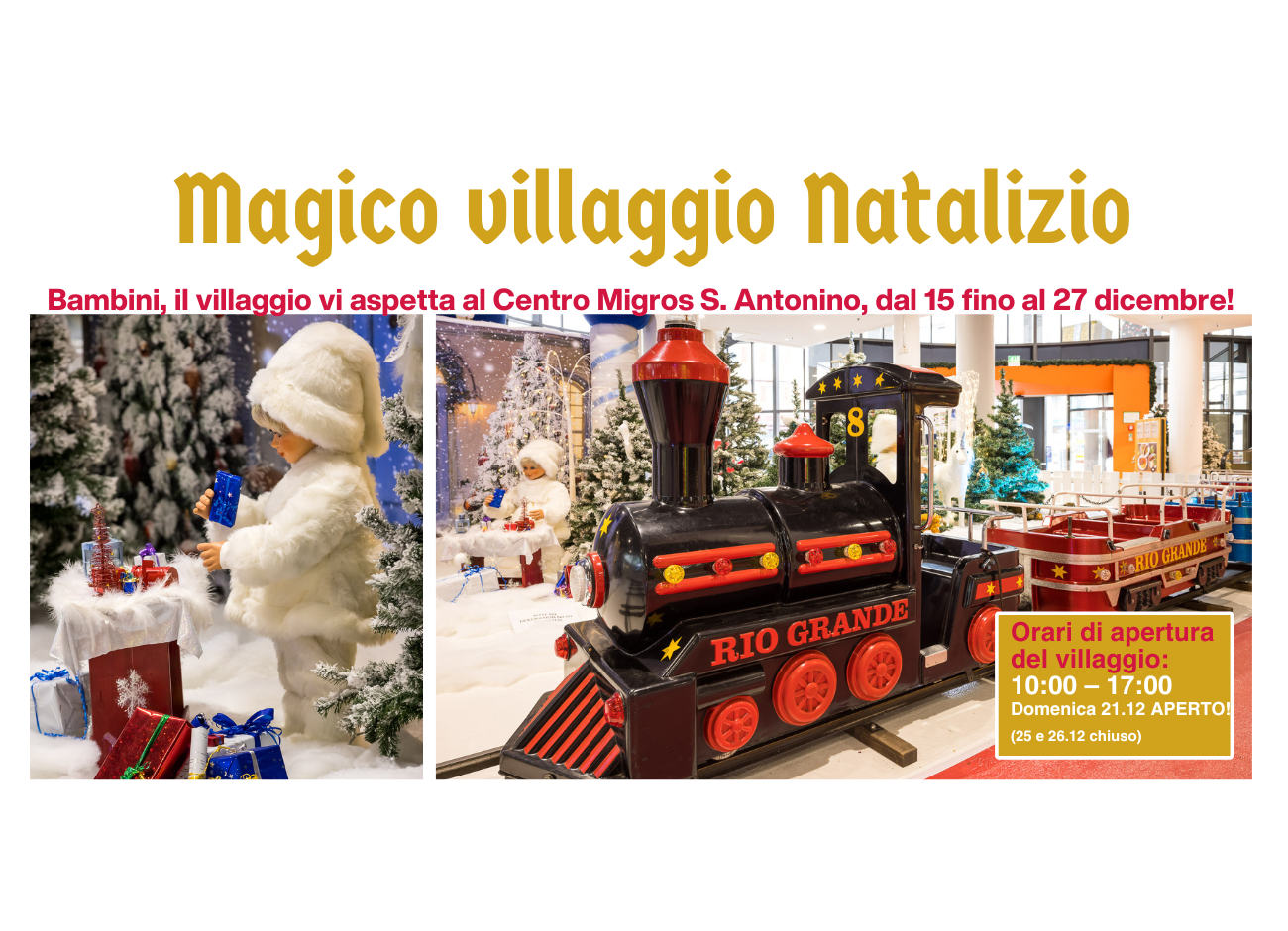 sarà disponibile dal 15 al 27 dicembre dalle 10:00 alle 13:00 e dalle 14:00 alle 17:00.